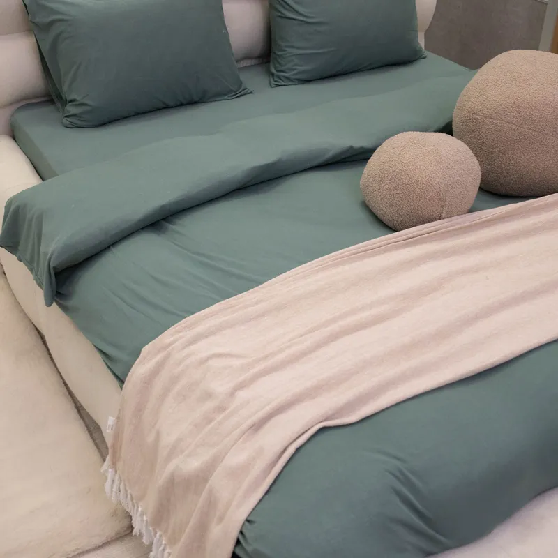 סט מצעים ג׳רסי מדריד – ירוק מרווה מביא אליכם שילוב מושלם של נוחות, איכות ועיצוב עכשווי. בין אם אתם אוהבים את האלגנטיות הנצחית של הלבן הקלאסי, את הגוונים המרגיעים של הפסטלים, או את הצבעים הנועזים והדוגמאות המקוריות – קולקציית מדריד מציעה פלטה רחבה שתתאים לכל סגנון עיצובי בחדר השינה.