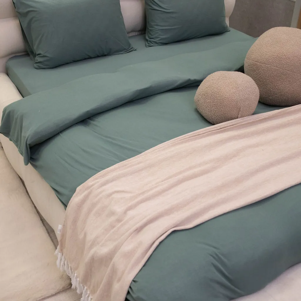 סט מצעים ג׳רסי מדריד בצבע ירוק מרווה – רך, נעים ומותאם לשינה מושלמת. זמין במגוון מידות, ניתן לשלב עם ציפה לשמיכה תואמת.