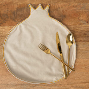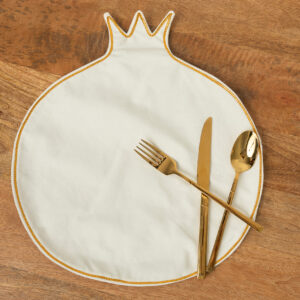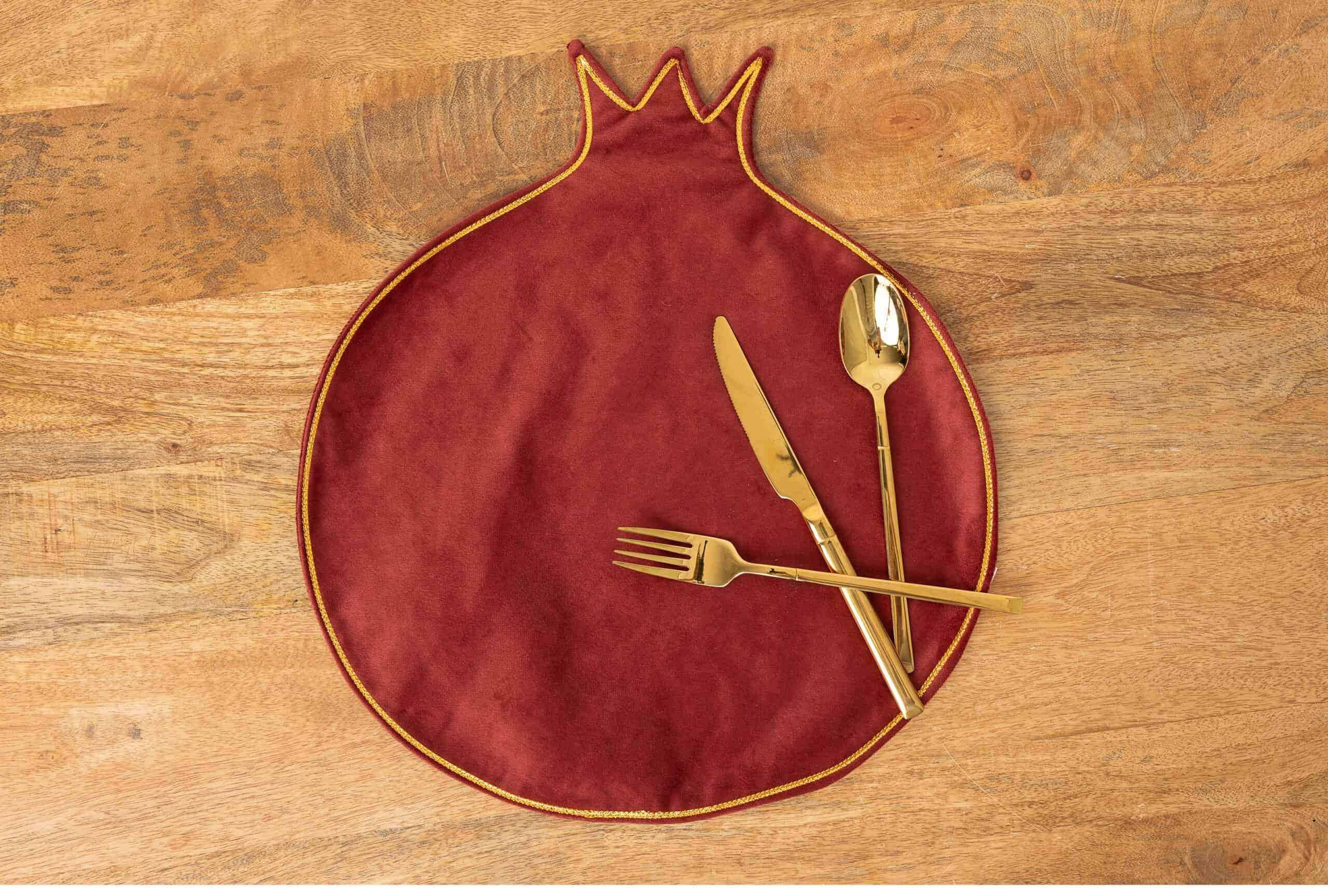 פלייסמט דקורטיבי בצורת רימון בעיצוב ייחודי שמכניס צבע, חום וסטייל לכל שולחן.